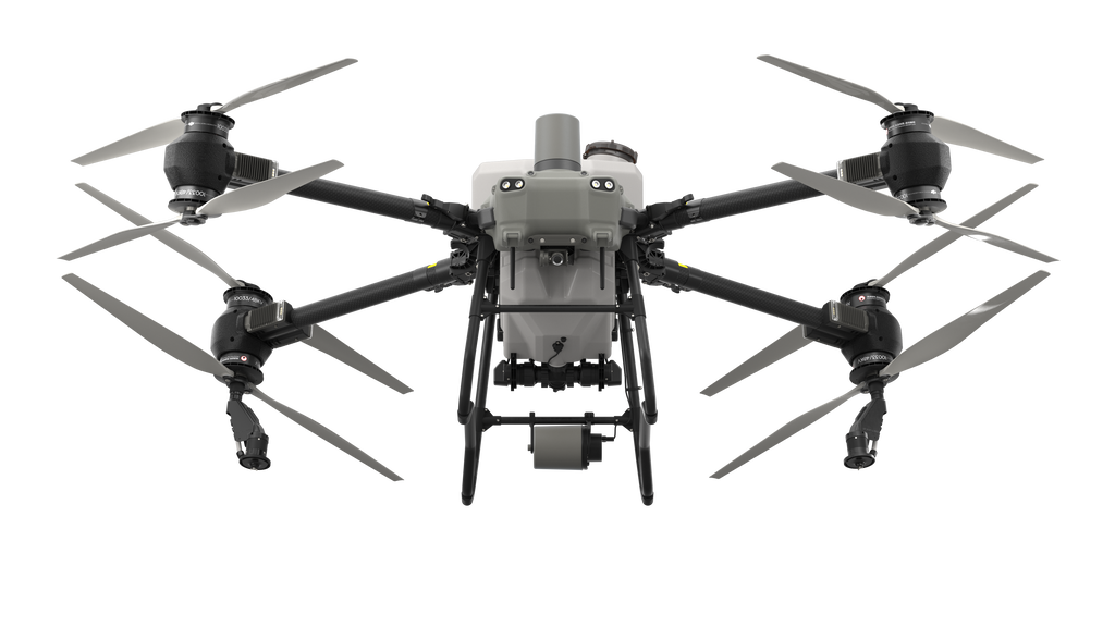 Agricultural spraying drone for precision farming. 40kg payload capacity for large-scale crop management.